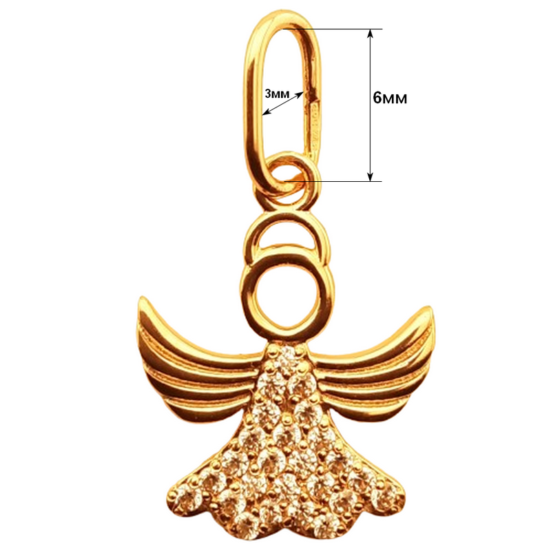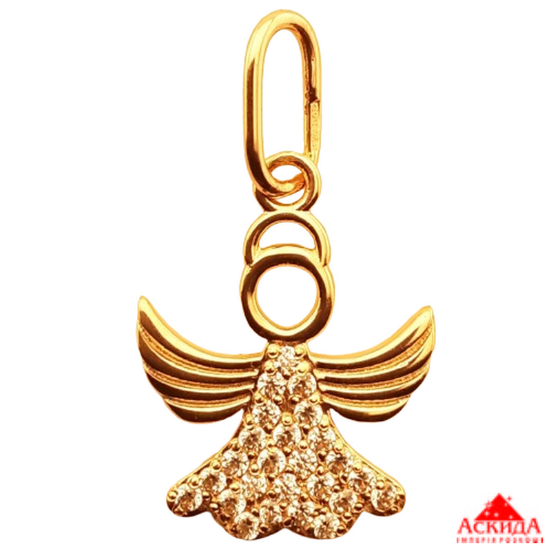 Подвеска Ангел с раскрытыми крыльями и ярким нарядом, украшенным большим количеством фианитов, изготовлена из золота 585 пробы, размером 25х14 мм, весом 1.33 гр, поражает своим изяществом и роскошью. Это элегантное украшение сочетает в себе символы защиты и красоты, придавая образу незабываемого очарования.