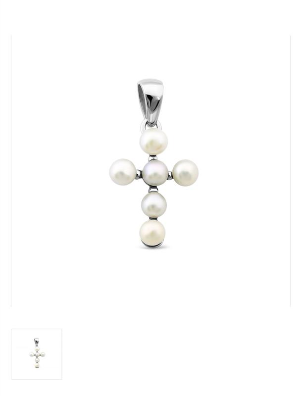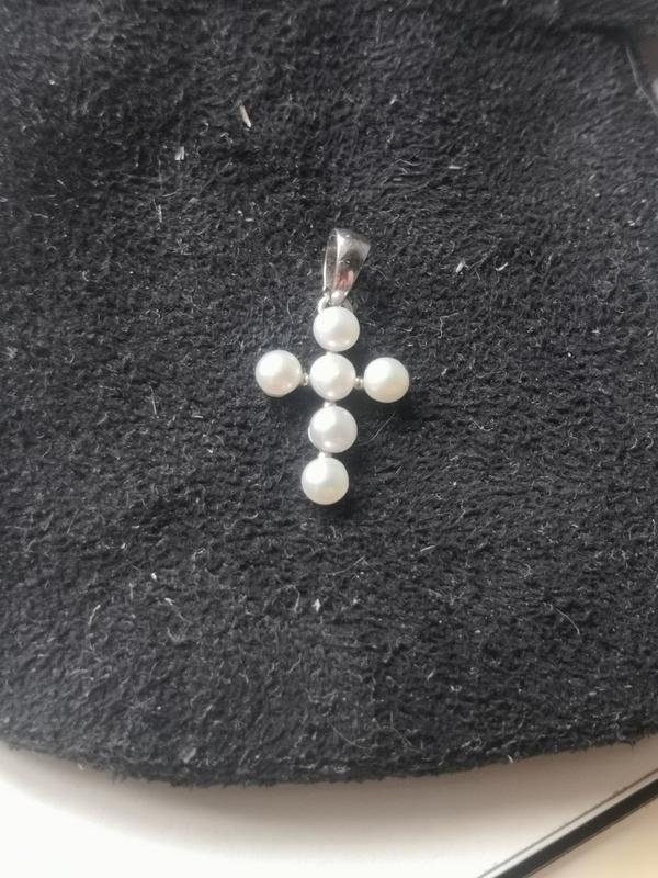 Серебряный крестик подвеска с натуральными жемчугом кулон серебряный крест
