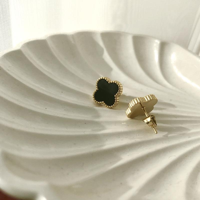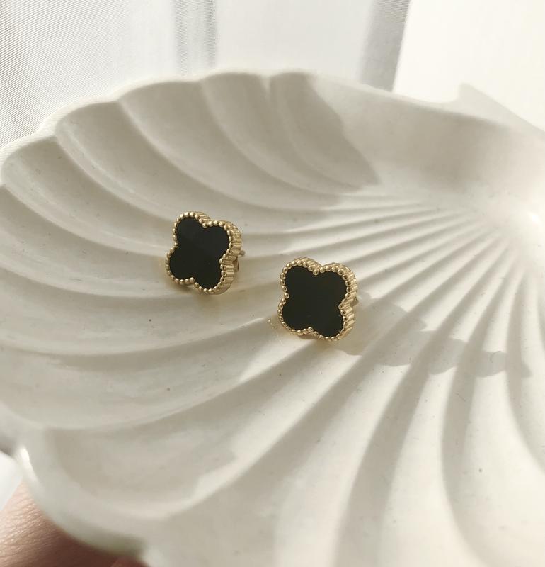 Трендовые пусеты van cleef черный клевер