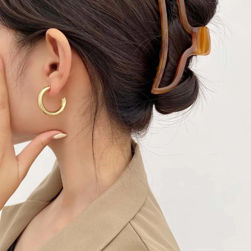 Серьги гвоздики в металлическом золотом каркасе в стиле ретро с акриловым вставками, модные геометрические серьги