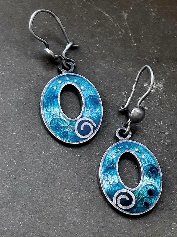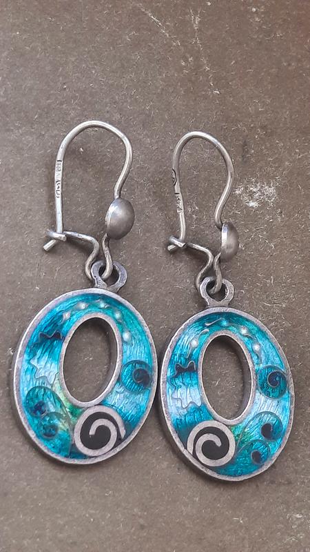 Винтажные мельхиоровые серьги с эмалью "клуазоне" kristi