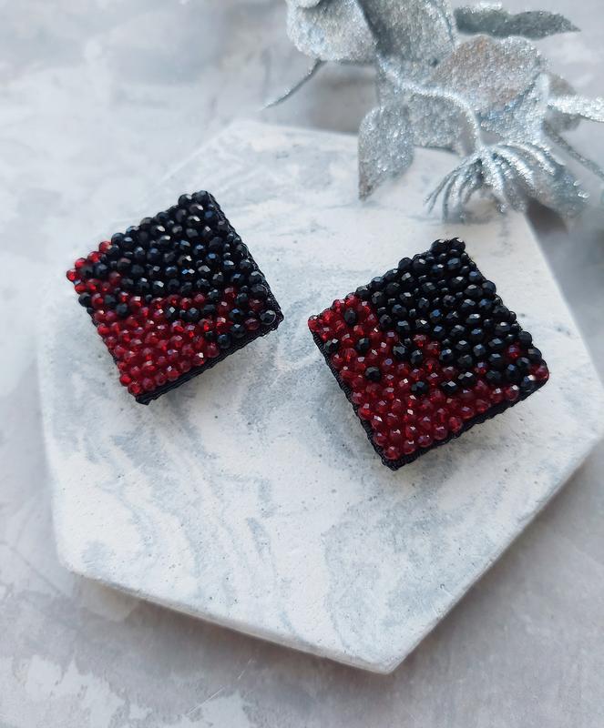 Размер 3×3см, невесомые на ушках. На заказ могут быть и на клипсах