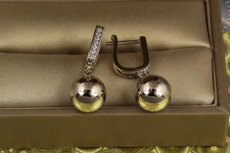 Серьги подвески Xuping Jewelry шарики 10 мм серебристые длина 2.5 см диаметршарика 10 мм застежка английская