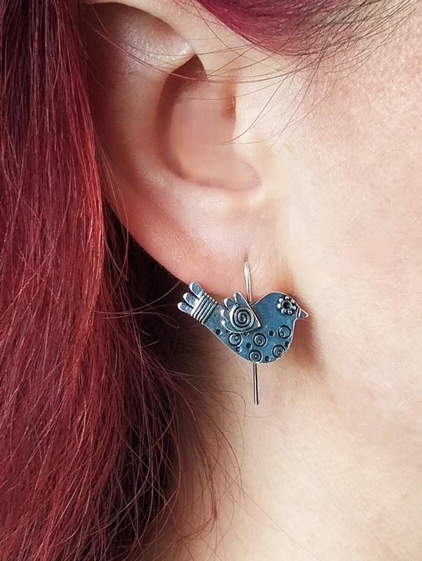 Трендовые серьги в этно стиле птички металлические