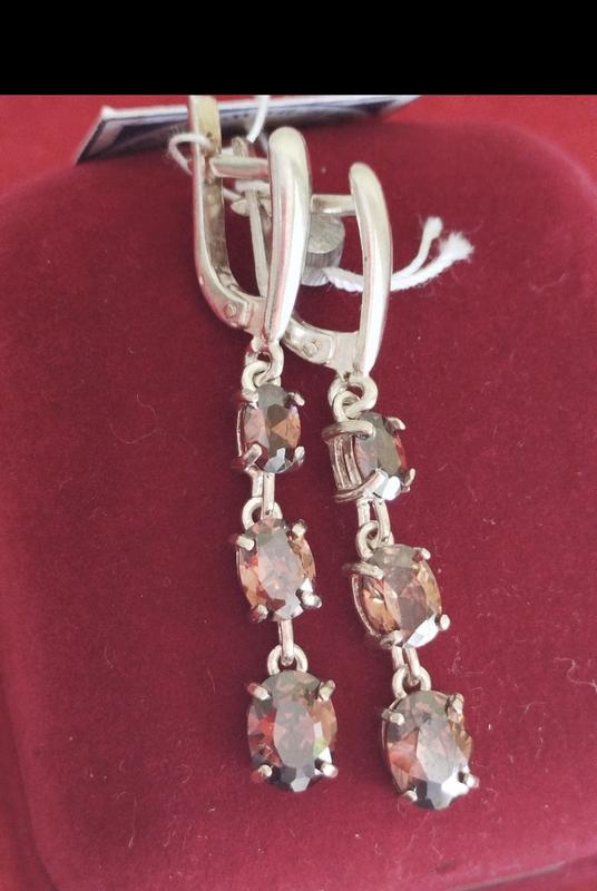Срібні сережки 925 проби із вставками куб. Цирконію коричневого кольору, вага виробу 6,05 грам.