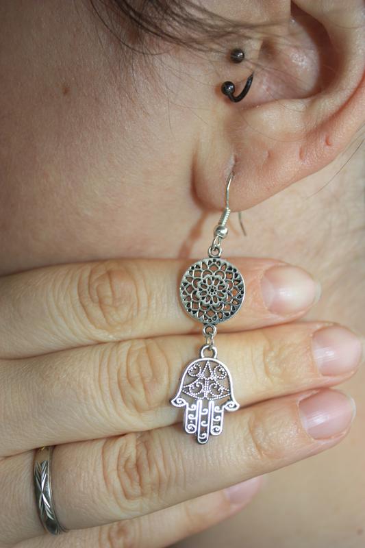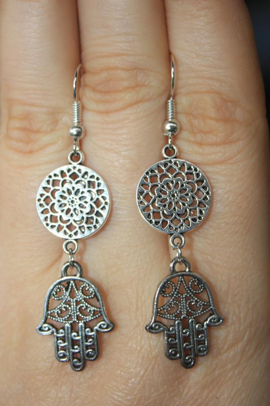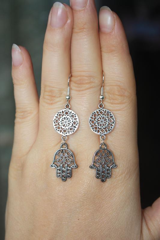 Серьги "Мандала и хамса-рука Фатимы "Длина 6 см
