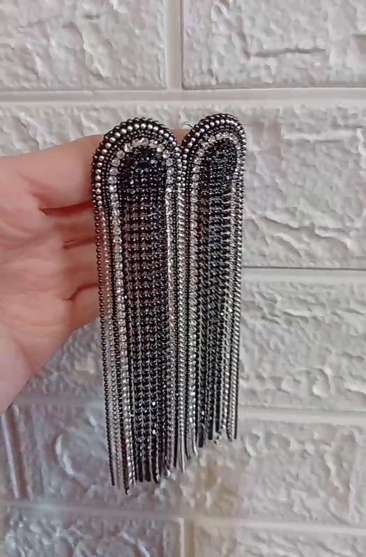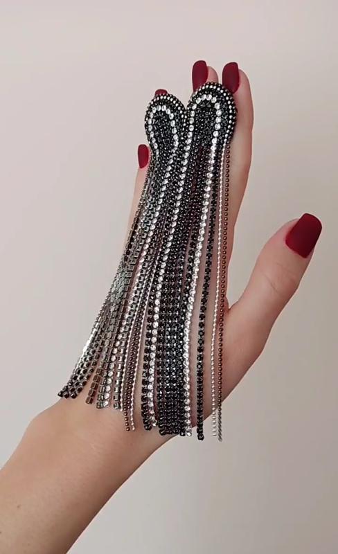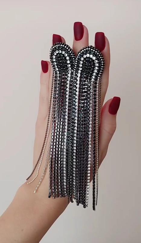 Розкішні довгі сережки зі страз - ідеальний варіант для урочистого вечора. Це саме та прикраса, яка може стати центром Вашого вечірнього образу, його серцем.