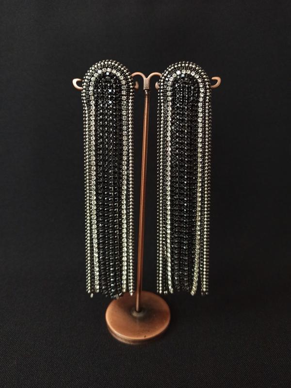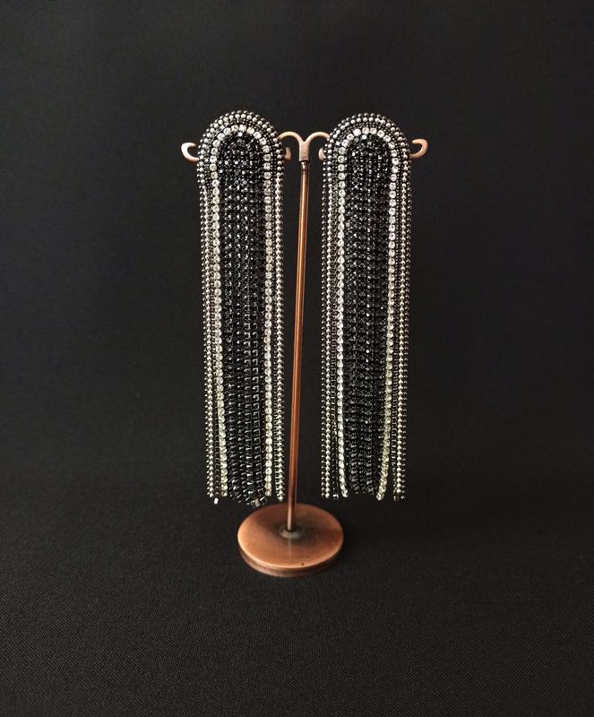 Длинные вечерние серьги из страз черного цвета "Black diamont"