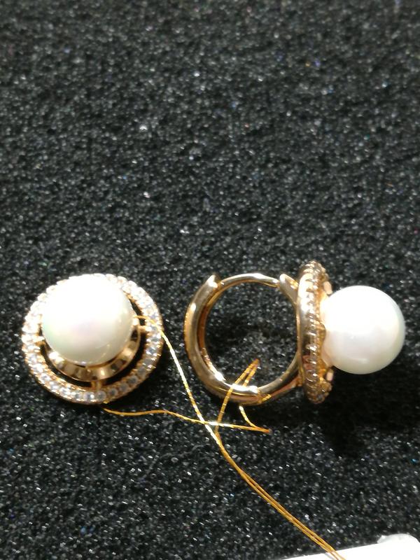 Серьги колечки жемчужины майорка в обрамление циркония, позолота 18К
