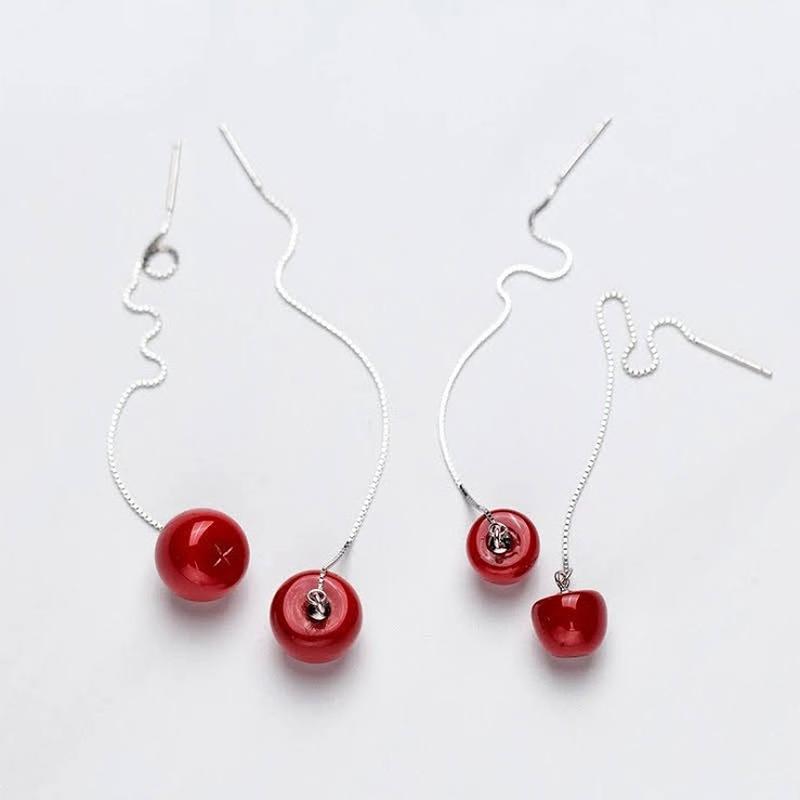 Новые серебряные серьги-протяжки "Вишенки. Металл - 100% серебро 925 пробы,покрытие родием. Вставки - муранское стекло. Маркировка. Без бирки.