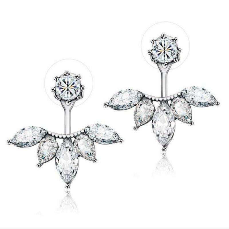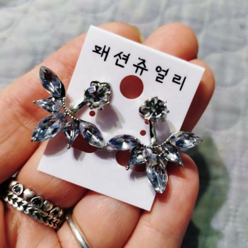 Серьги 2-в-1. Их можно носить как трендовые джекеты, в которых регулируется высота цветка и её можно сделать по вашему вкусу в трёх разных положениях. Так же, их можно носить и как отдельные гвоздики-хрусталики.