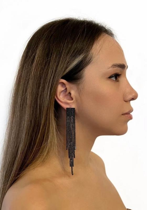 Эффектные нарядные вечерние серьги черные стразы. Легкие и удобные в носке. Размер: длина -9, 5 см, ширина - 1,5 см