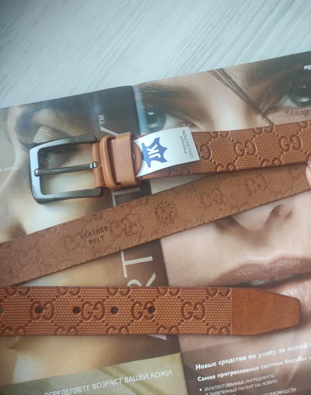 Мужской кожаный ременьСтильный дизайн, натуральная кожа;Длина ремня с учетом пряжки: 119 см (размер уменьшается);Ширина: 3.7 см;