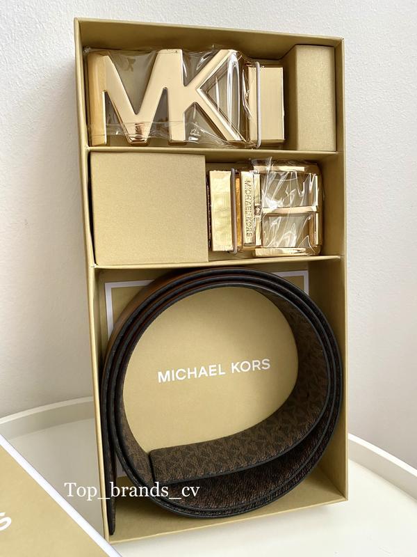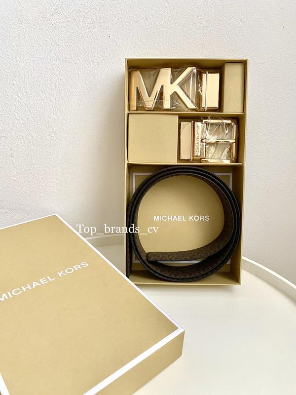 В наличии наборы Michael Kors: двухсторонний ремень и две пряжки в красивой подарочной коробке 😍Длина: (подрезается)Ширина: 4 смИзбавлены в официальном аутлете