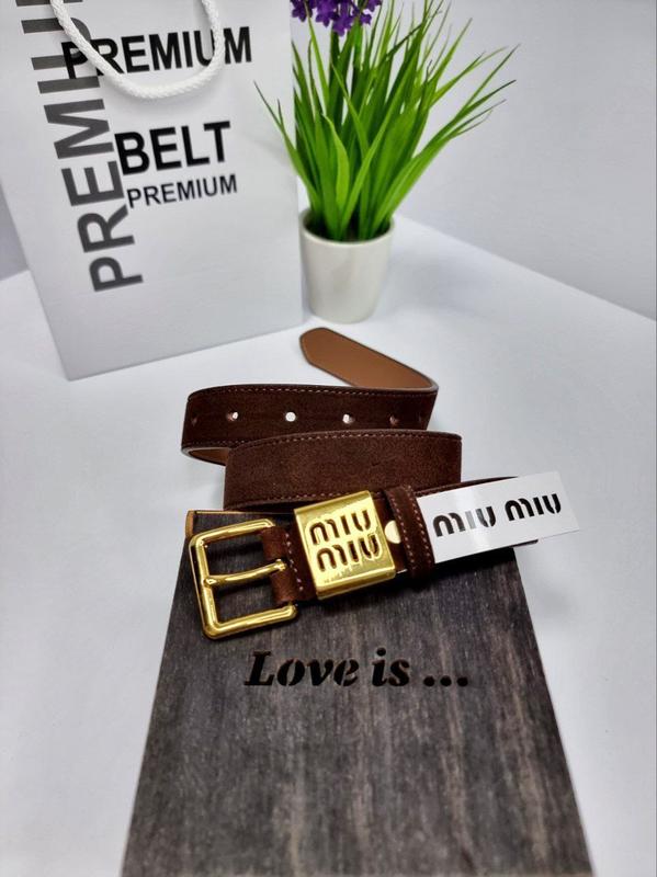 Пряжка: Золотистая металлическая пряжка с изысканным логотипом "Miu Miu" добавляет аксессуара шика и акцентирует ваш стиль.