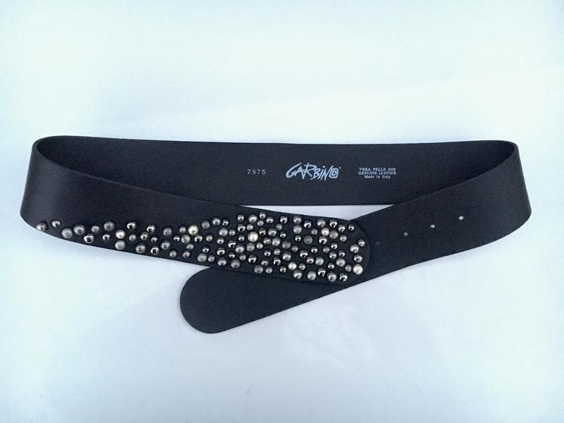 Широкий пасок vera pelle жіночий 85-95 чорний з наппи з металевими заклепками ремінь made...