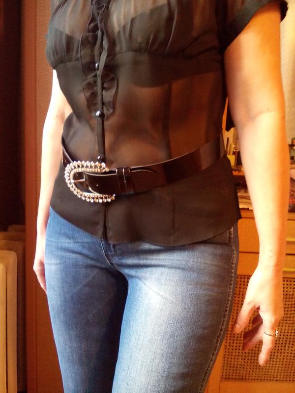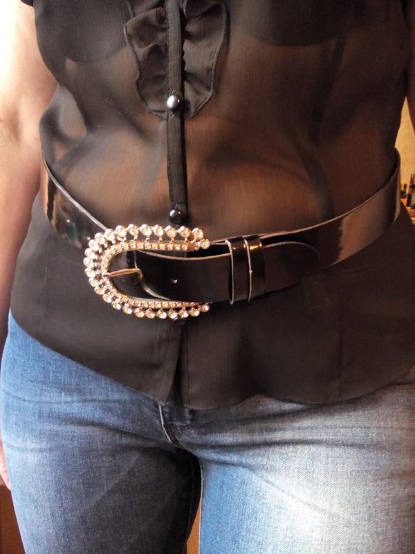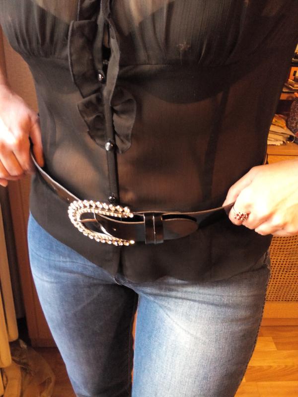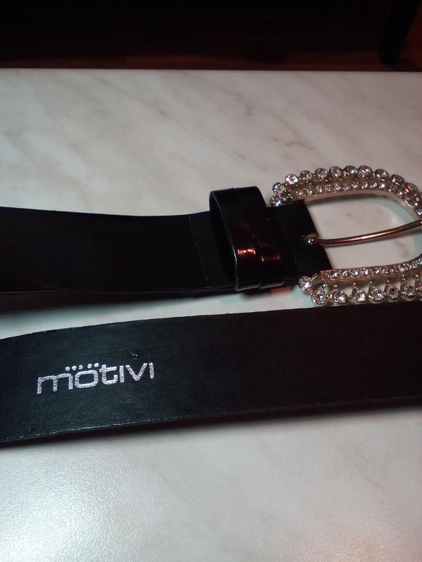 Красивый женский пояс , черный , лаковый , пряжка со стразами от известного бренда MOTIVI, полная длина 99 см, ширина 3,7 см. ,длина до первой дырочки79 см, длина до последней дырочки 89 см, 5 дырочек , между дырочками 2,5 см. ,пряжка 7,5 см.