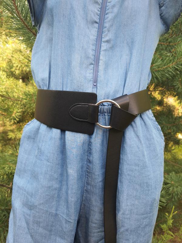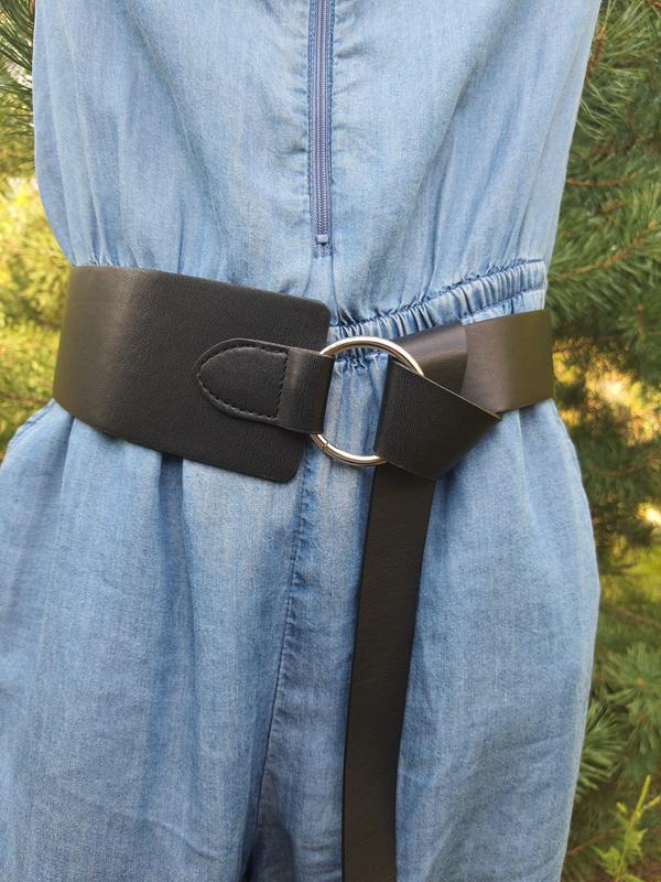 Элегантный ремень из мягкой экокожи. Кольцо метал (цвет сталь). На любую талию. По "Безопасной оплате" работаем. В наличии темносинем цветах. Самая широкая часть ремня 7 см узкая 2,3 см длина 127 см.