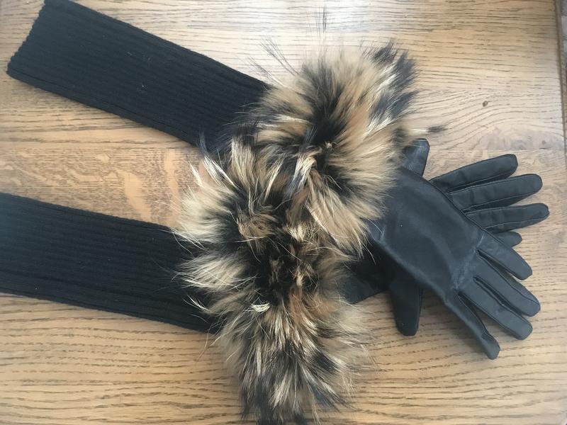 Перчатки натуральная кожа,мех натуральный(енот )стан идеальный размер S