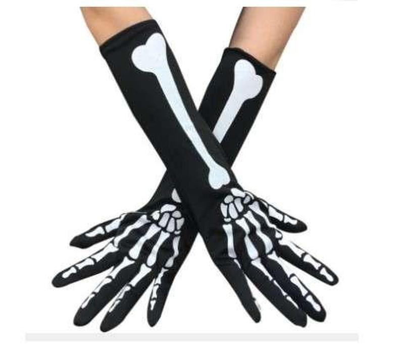 Перчатки чёрные "скелет", длинные (37 см). универсальный размер
