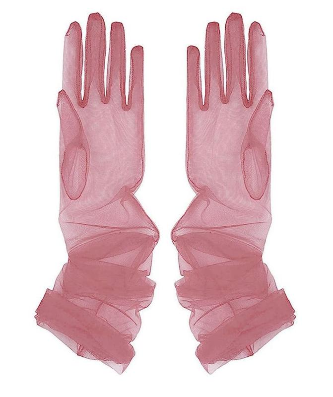 Длинные перчатки фатиновые пудрово-розовые