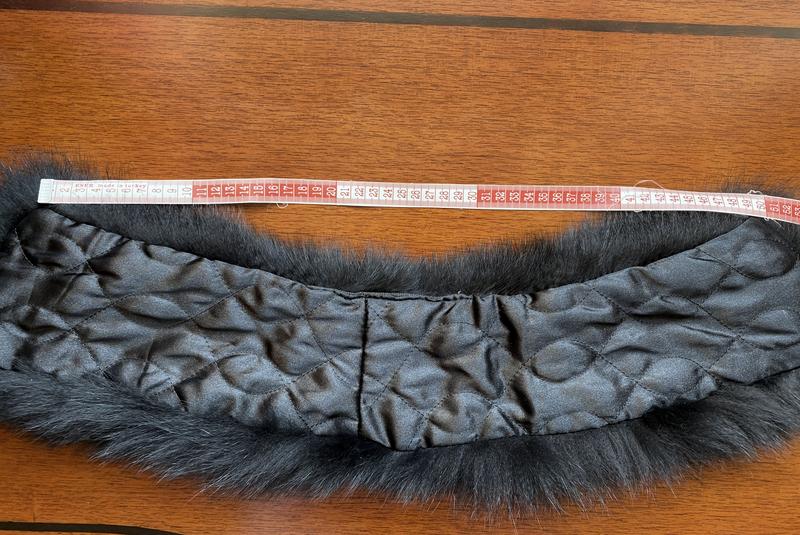 Черный натуральный песцовый воротник для пальто, куртки и т.д. Мех качественный, очень пушистый, не сыпется. Снизу подшит атласной простеганной подкладкой. Замеры на фото.