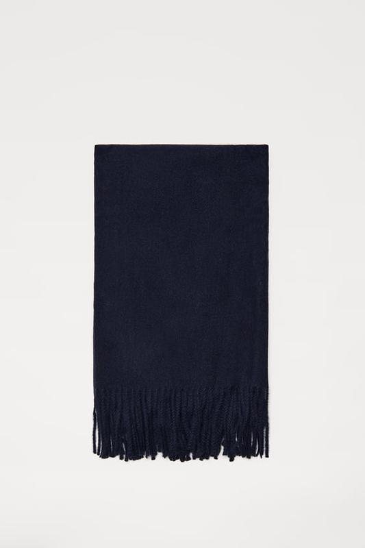 ZaraШарф із бахромою по краях.Змішана штапельна тканина з вовною.