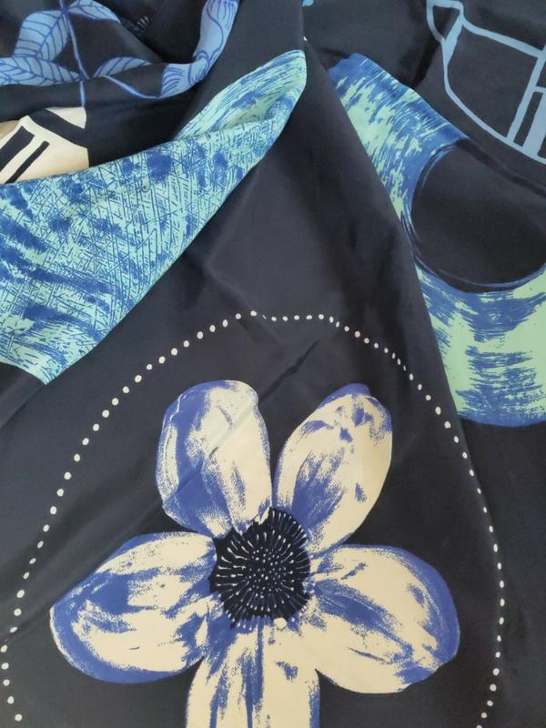 Стильное дополнение вашего весеннего настроения. Качественный шелковый платок в синий гамме с интересным принтом освежит ваш стиль и выделит из толпы... Размер 84см/84смИдеальное состояние, ручной подгиб и наличие ярлычка.