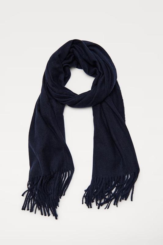 Zara Шарф с бахромой по краям. Смешанная штапельная ткань с шерстью. Размеры: 184 x 63 см. 31% ВОЛНА · 23% ПОЛИЭСТЕР · 17% АКРИЛ · 22% ВЕСКОЗА · 7% ПОЛИАМИД