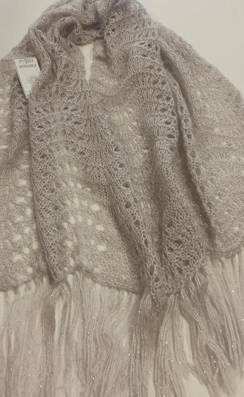 Шарф палантин шаль снуд ручна робота, з люрексом,колiр серебристий,