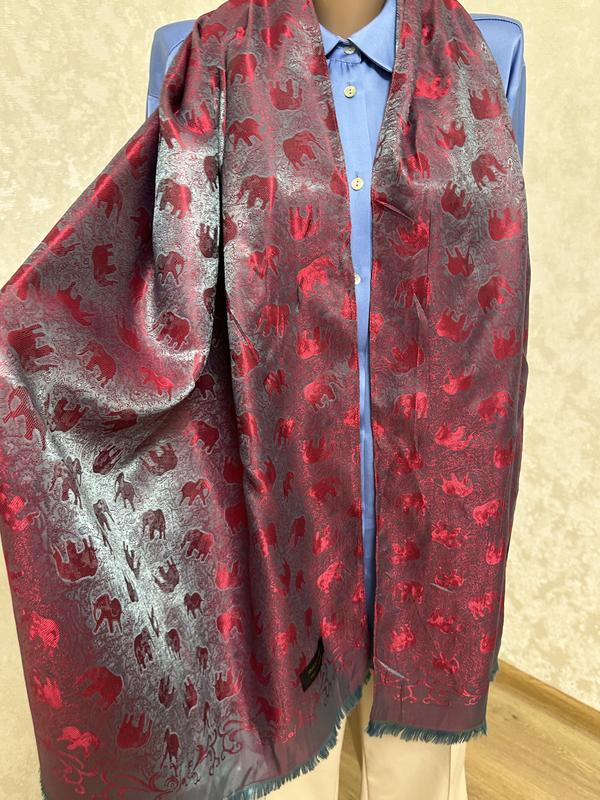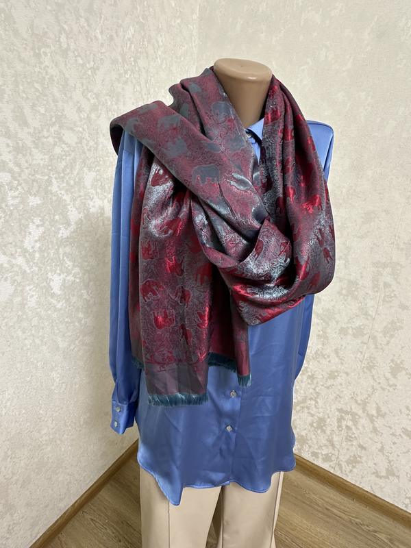 Шовковий атласный жаккардовый шарф палантин с красноватым отливом.Размер :175 * 66