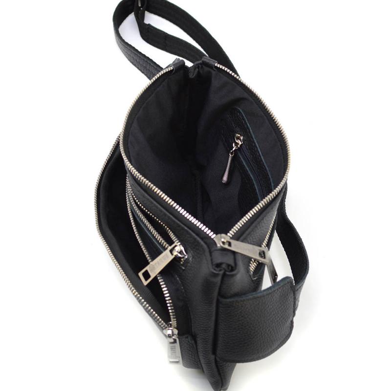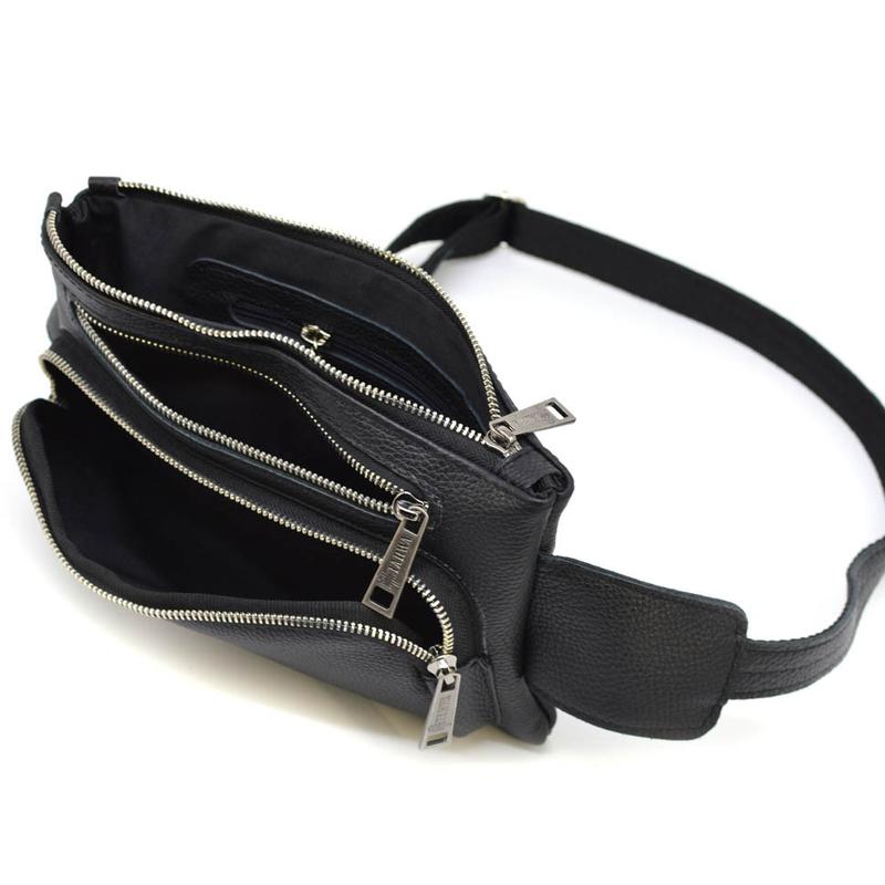 Сумка напоясна GA-8137-4lx українського бренду TARWA виготовлена з натуральної телячої шкіри. Зручна модель на кожен день та для поїздок. Якісний аксесуар для зберігання цінних предметів, таких як телефон, портмоне, особисті документи, ключі та багато іншого. Виріб має одне основне відділення на блискавці з врізною кишенею на блискавці всередині. На лицьовій стороні розташовується об'ємна кишеня з блискавкою, а також плоска врізна на блискавці.