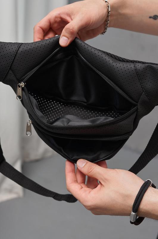 - Размеры: 34 х 14 см;- материал: перфорированный кожзаменитель;- 2 отделения на молнии;- ремень регулируется по длине;- Логотип видавлений.1564006466