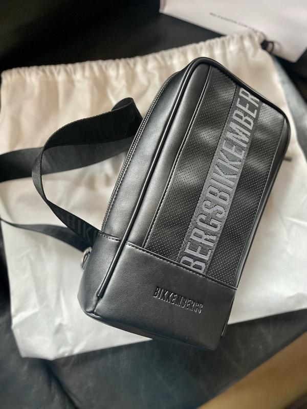 Небольшая кожаная мужская слинг сумка через плечо – черная стильная и удобная сумка
