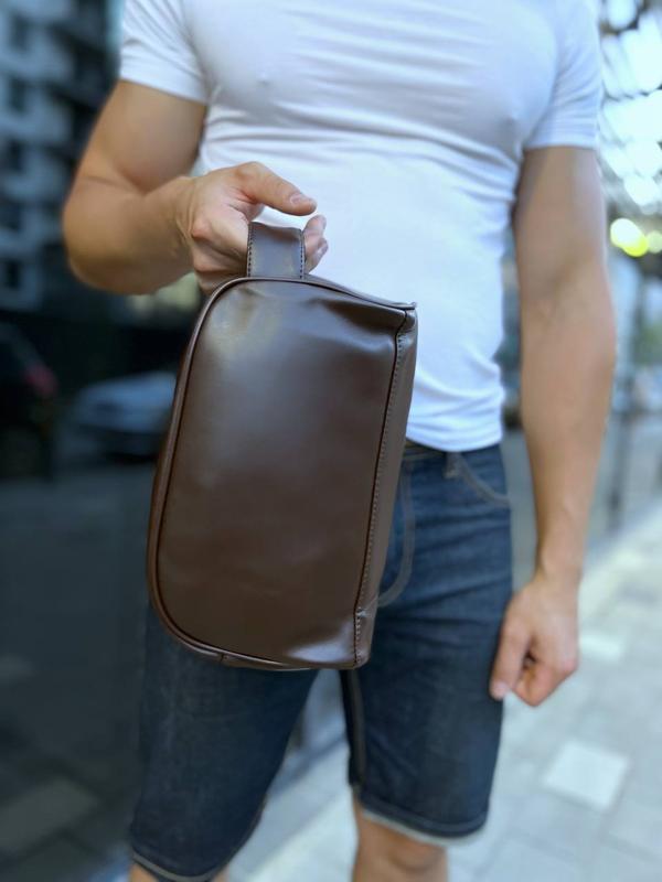 Характеристики:• розміри: 25*13*10 см• матеріал: якісна еко-шкіра• наявність збоку ручки для носіння сумки в руці• закривається на блискавку• хороша фурнітура• якісна підкладка
