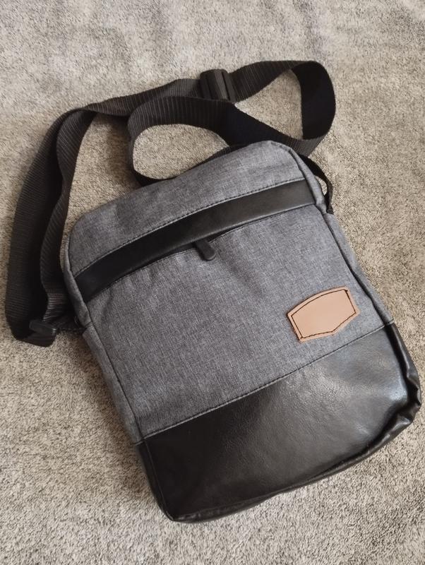 Мужская сумка через плечо. Размеры: высота 25 см, ширина 20 см, толщина 8см,материал полиэстер, экокожа. Спереди и сзади сумки есть два кармана размером15х16 см + один внутри сумки, регулировка длины ремешка. Цвет джинс.