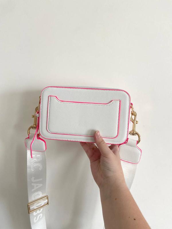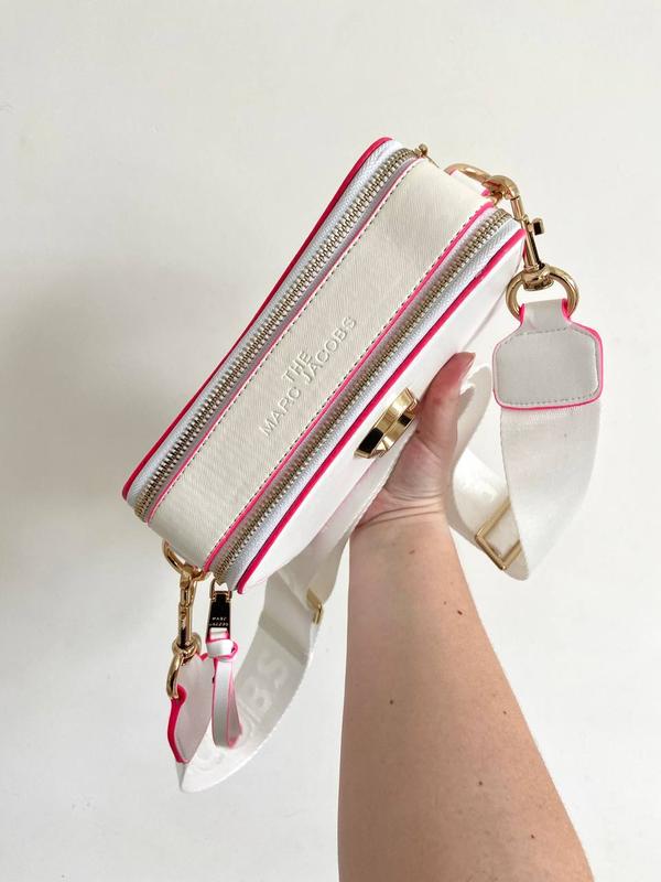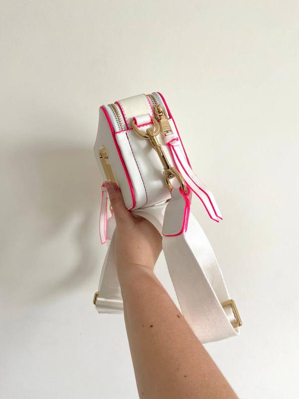 MJ Logo white /pink line • Матеріал - еко шкіра • Розмір : 20*12*7 • Два відділення, розділені стінкою з еко шкіри, ззаду кишеньку. Ремінь 120 см Ціна: 1550 грн