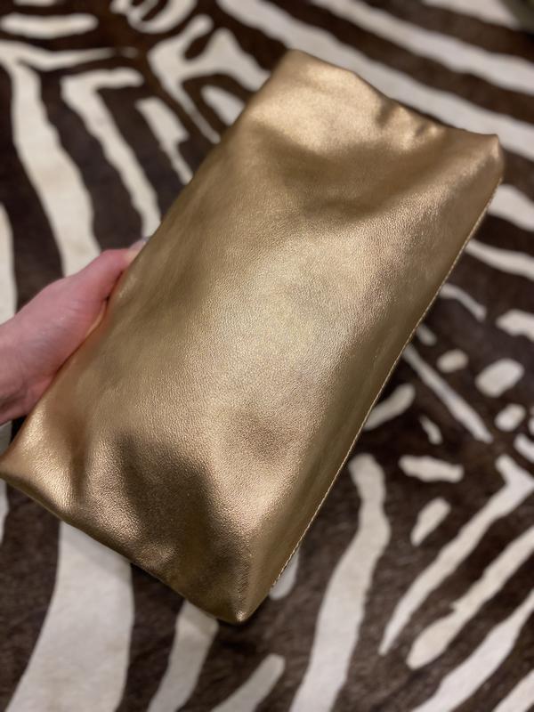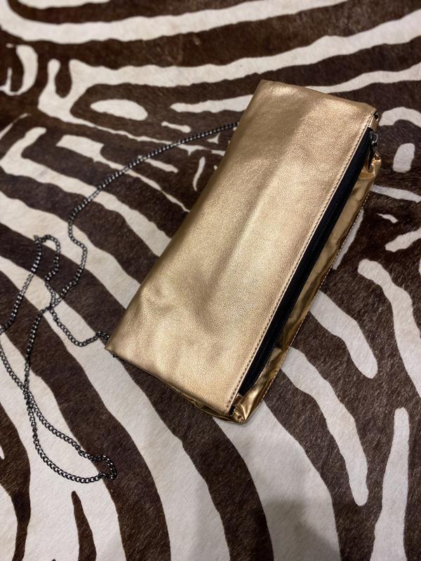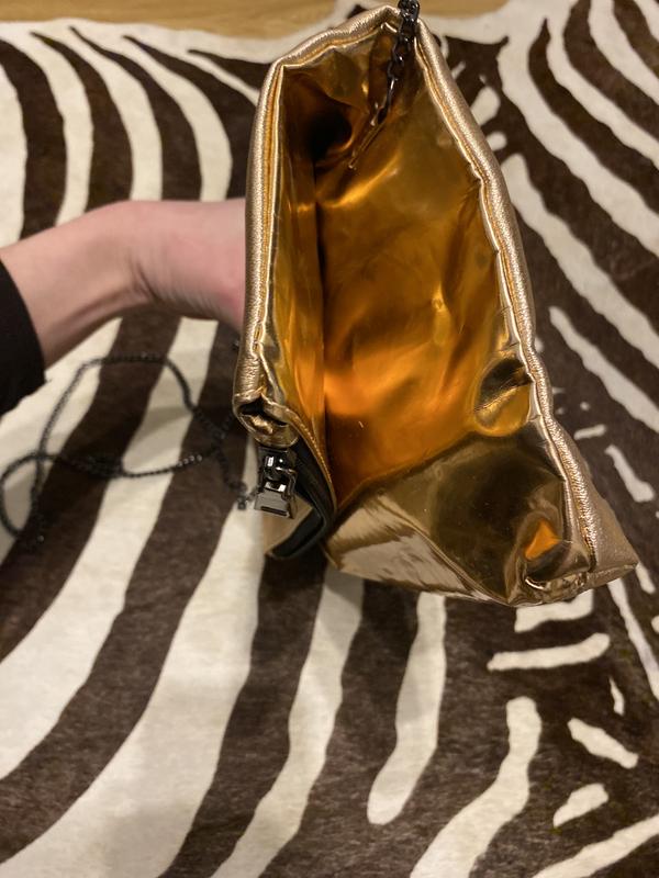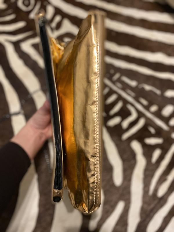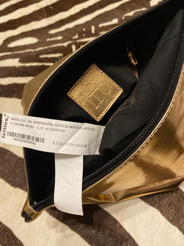 Второй Lefties золотистый в сочетании лаковой стороны внутреннего и матового покрытия сверху без трещин и значительных царапин в середине видно что подкладка чистая нет дефектов.Купируя два 350 грн