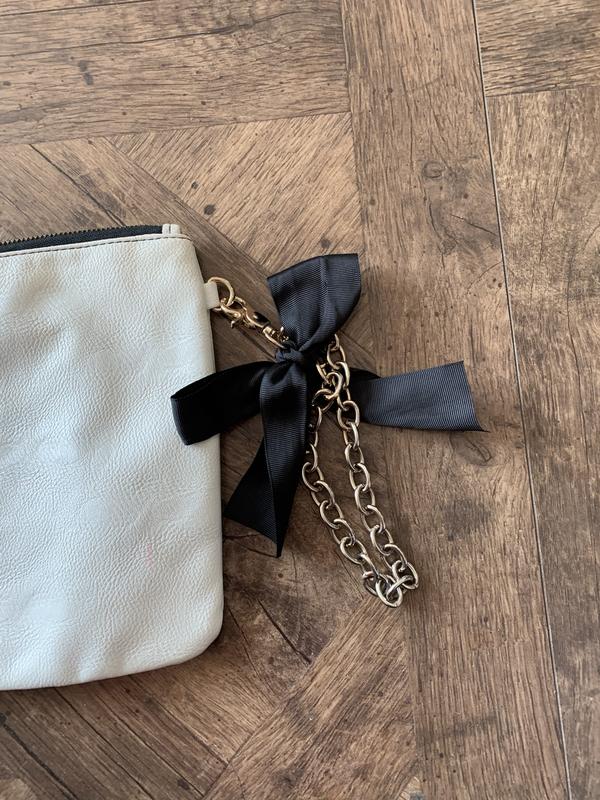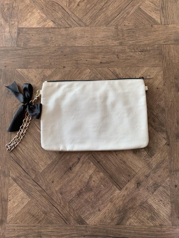 Сумка клатч Parfois Размер средний Эко кожа Золотая цепочка с черным бантом Также в продаже есть черно-белые браслеты тоже Parfois и полный готовый образ (платье и босоножки) смотрите на последнем фотоКомплектом отдам дешевле