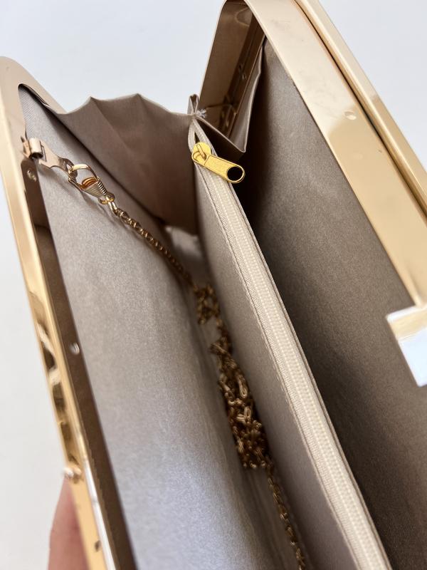 Клатч с цепочкой в бежевом цвете с золотыми деталями