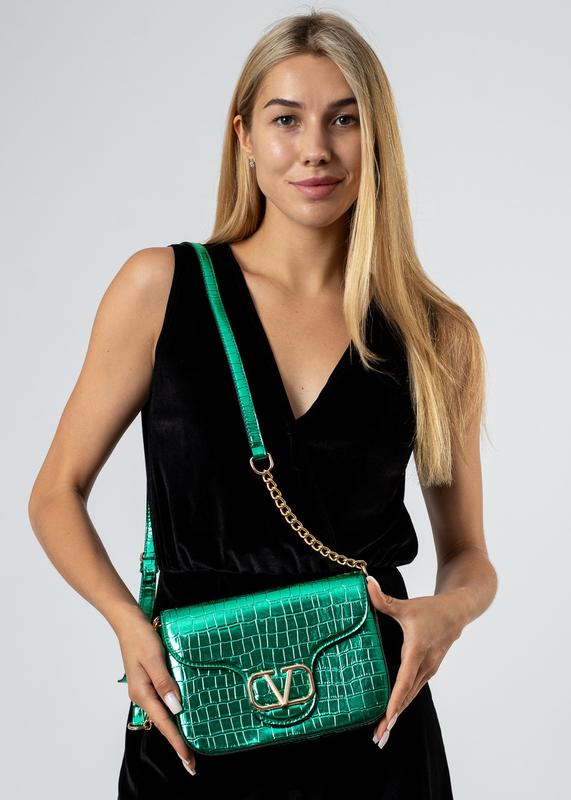 Высота сумки: 16 Застежка: Магнит Количество ручек: нема Материал верха: Экокожа Материал подкладки: Текстиль Плечевой ремень: ТАК Резинка: Нет Страна производителя: Китай Цвет: Зеленый Ширина сумки: 21