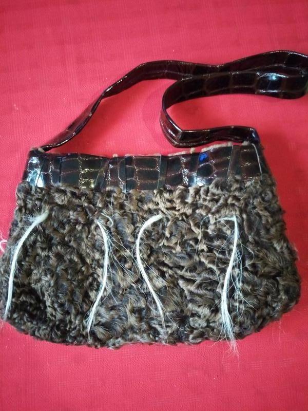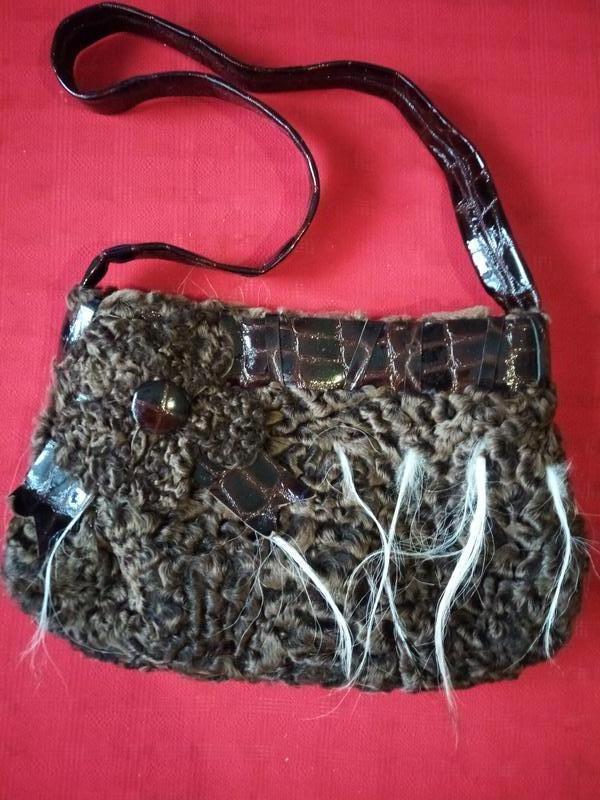 стильная мини сумочка из каракульчи и натуральной лаковой кожи