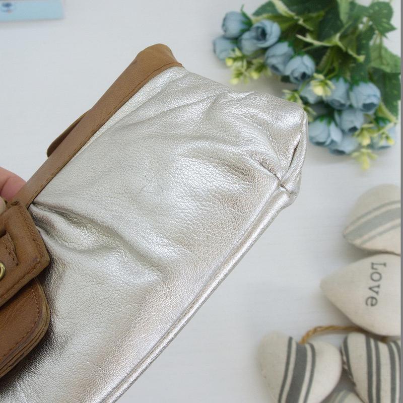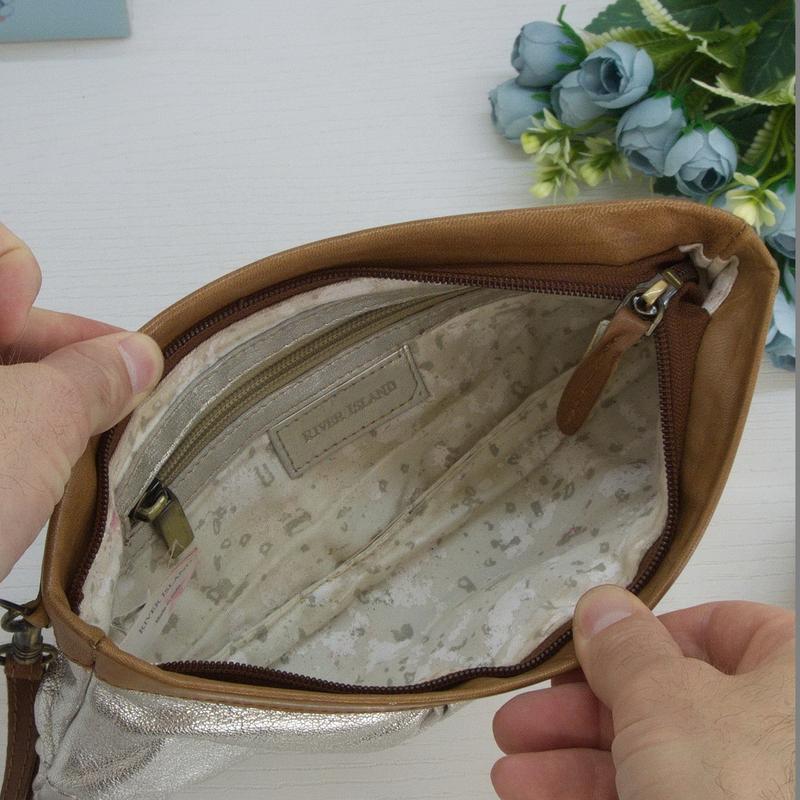 Выполнен из мягкой натуральной кожи отличнейшего качества, закрывается на молнию и декоративный ремень на магнитной кнопке, внутри одно отделение, в нем карман на молнии. Верхний край на каркасе, клатч отлично держит форму. Есть съемная петля для запястья.