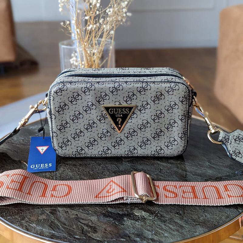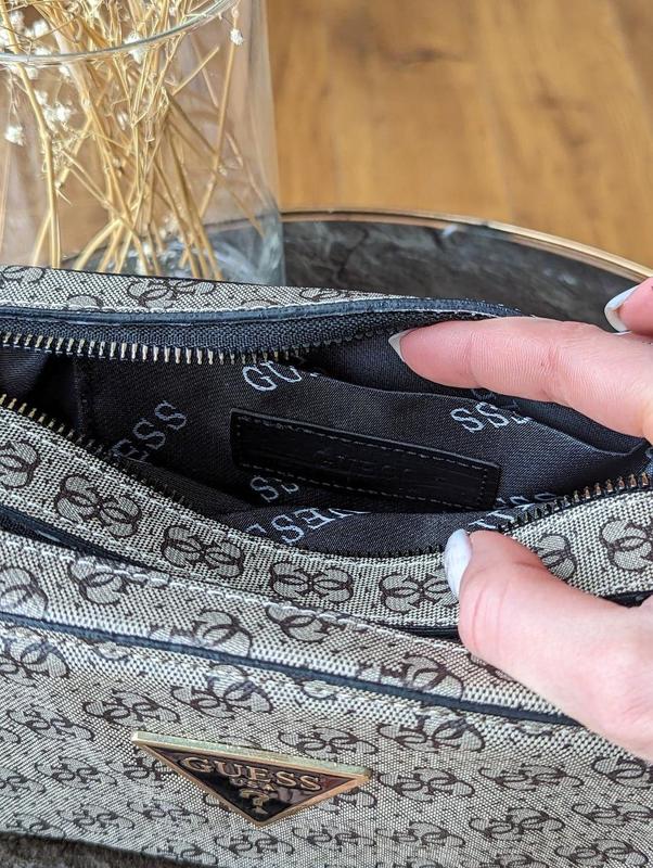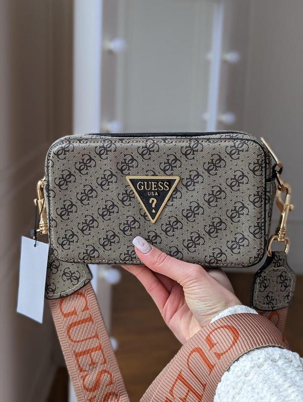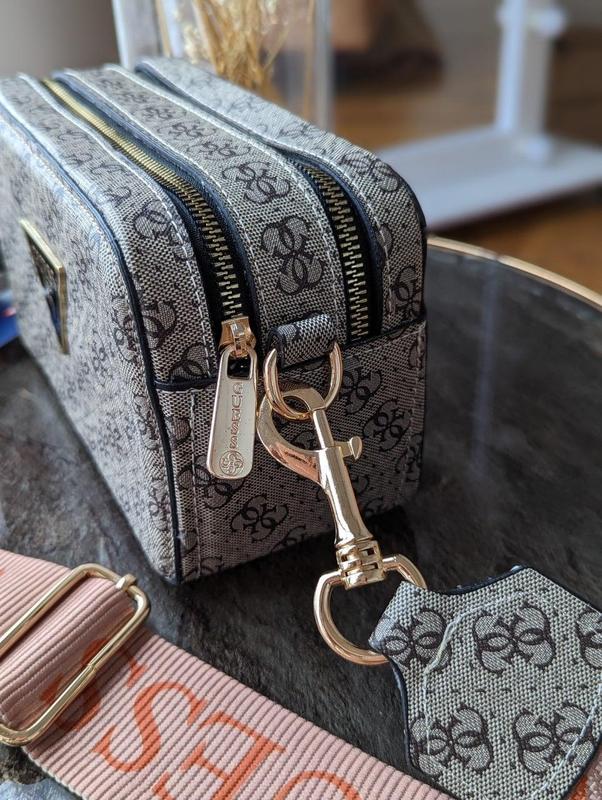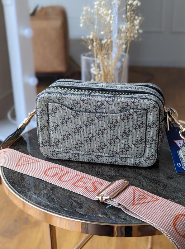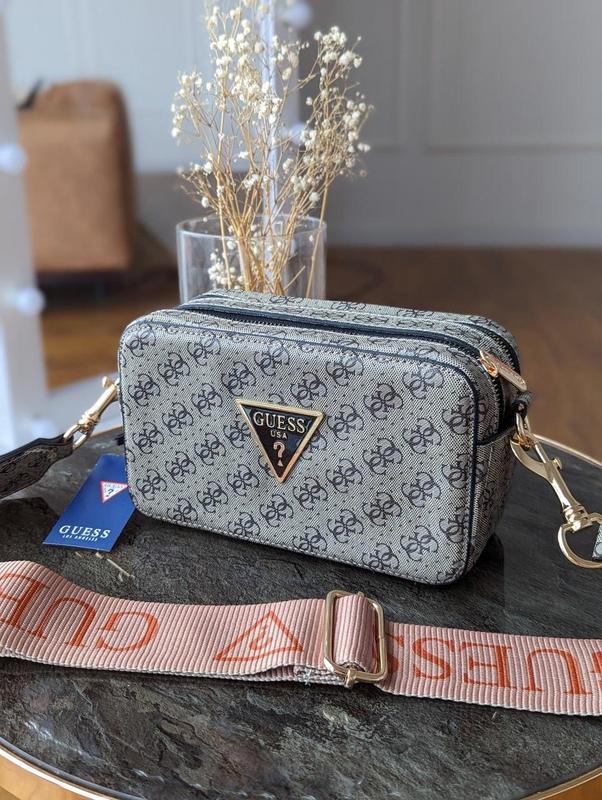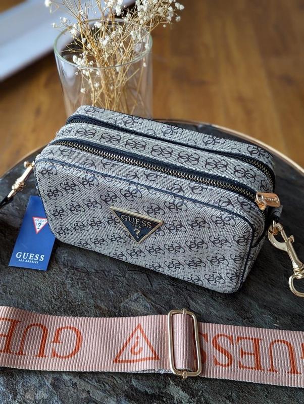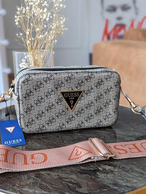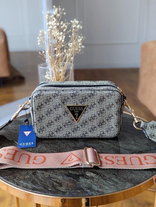 Маленькая серая брендовая сумка «Guess» клатч через плечо, женская красивая мини сумочка кросс-боди на ремешке.
