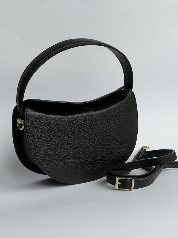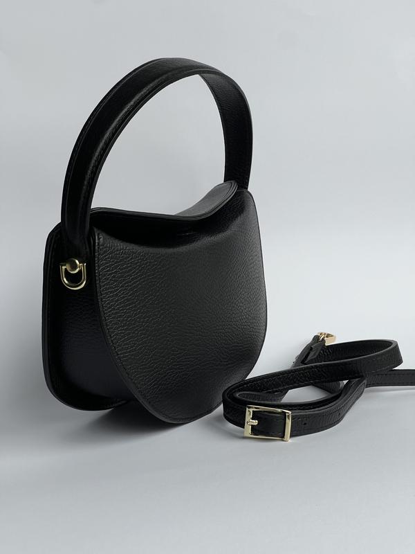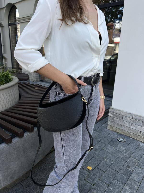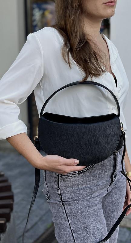 Сумочка трансформер, может быть с короткой каркасной ручкой в более классическом стиле, а возможно без этой ручки в более повседневном стиле. В наличии дополнительный длинный ремешок. Хорошо держит форму, трендовая магнитная застежка сверху.
