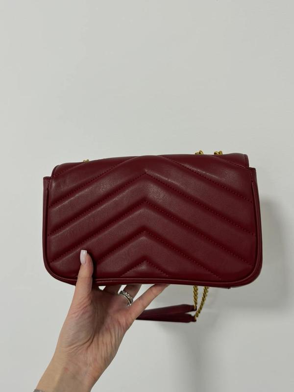 Сумка выполнена из гладкой кожи, полностью прострочена.