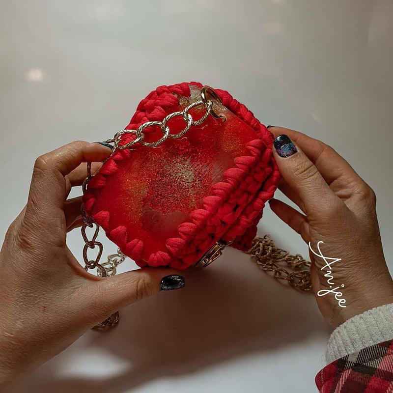Вязаная сумочка с боковушками из эпоксидной смолы, которые я сделала тоже своими ручками ❤️🙌🙏 Очень стильная и вместительная штучка🌸👆