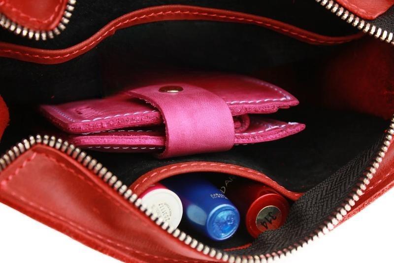 Одно большое отделение на молнии с перегородками. Спереди под клапаном - дополнительный карман, сзади - отдел на молнии.