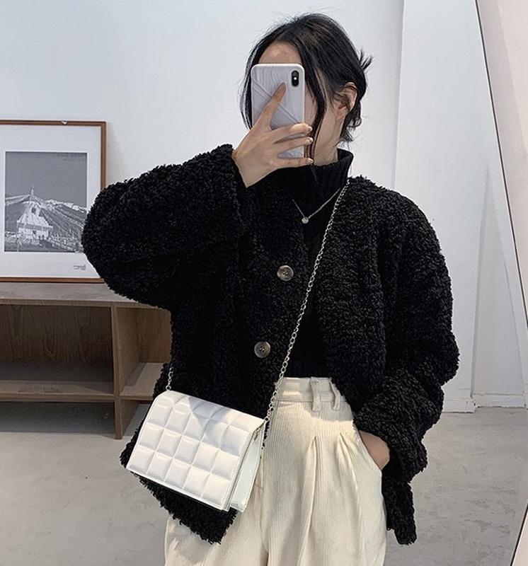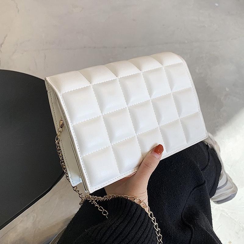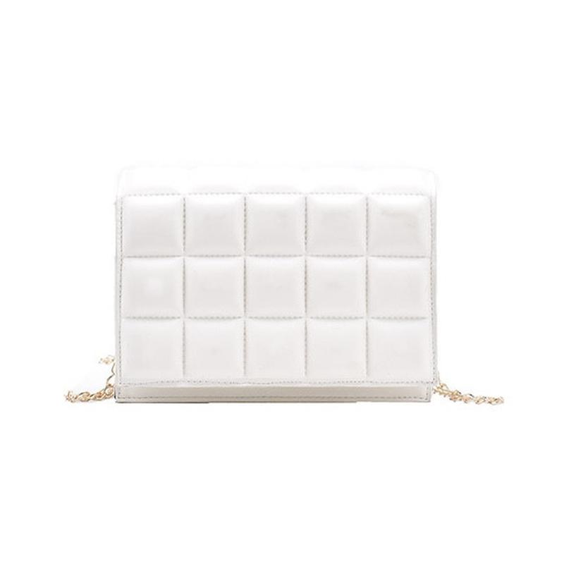 Женский небольшой клатч на цепочке прошит в кубик, сумочка небольшая, на одно