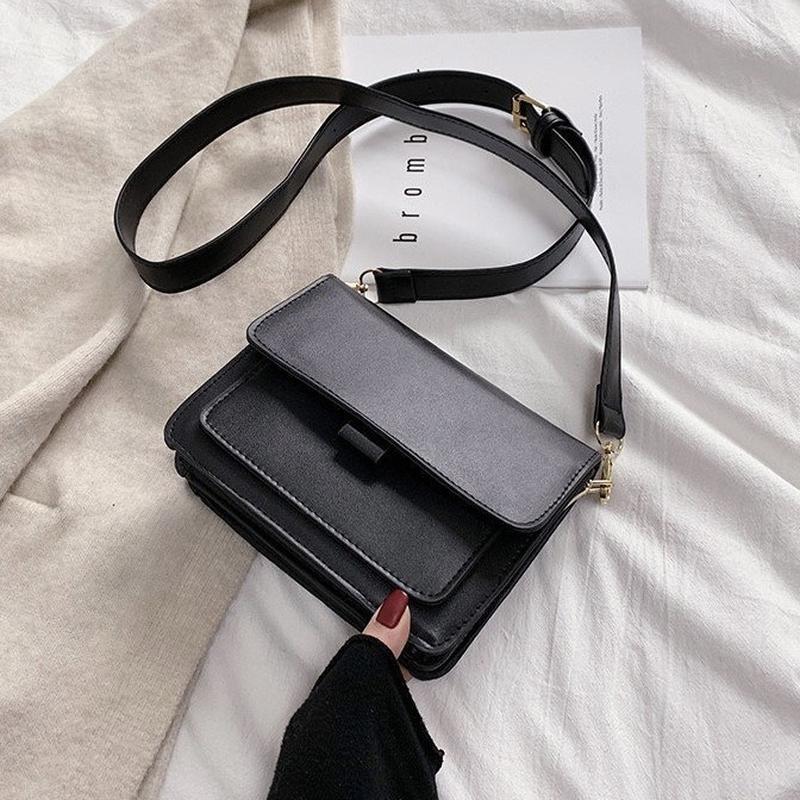 Женская классическая сумочка на ремне кросс-боди на три отдела черная